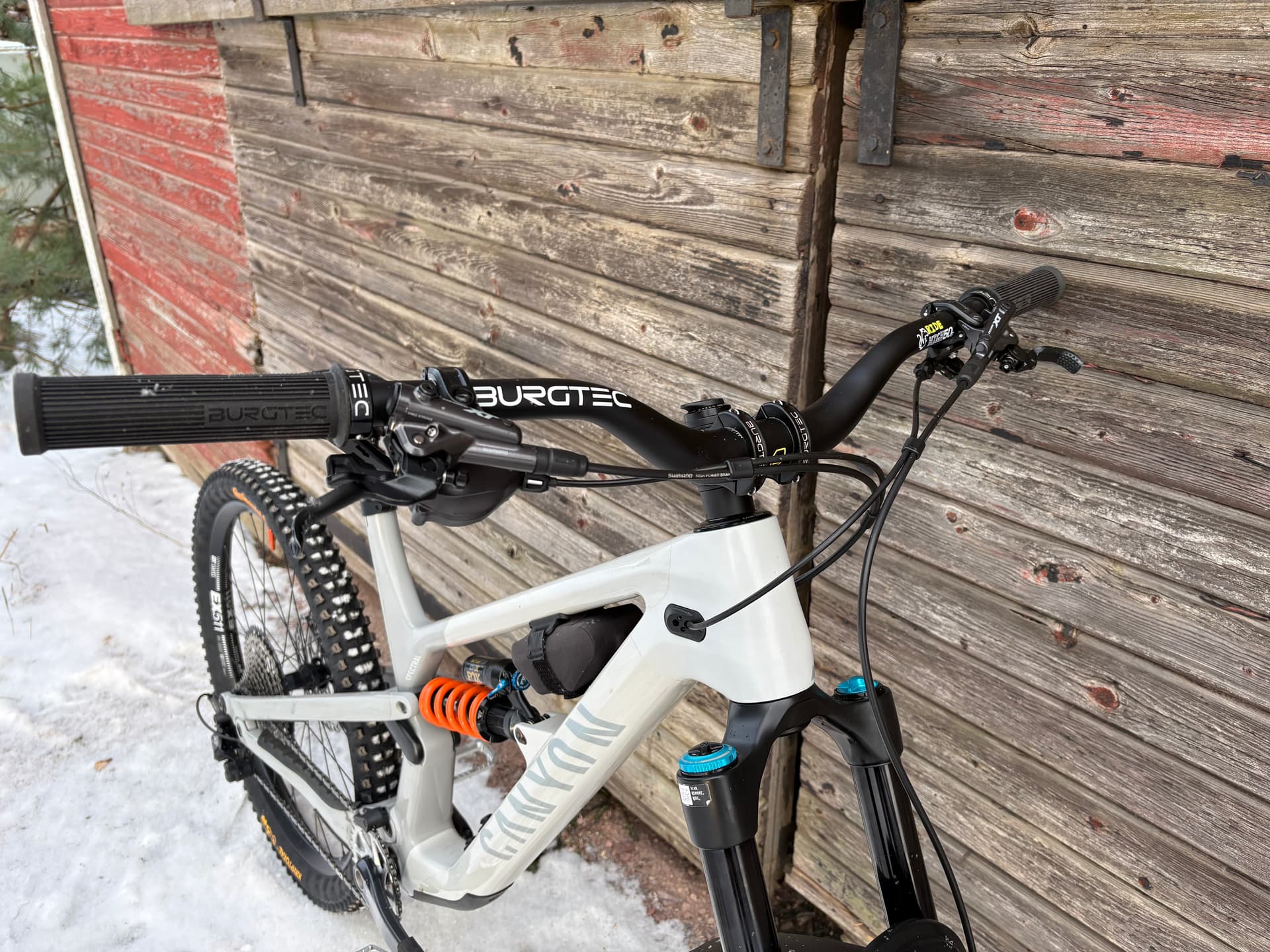 Tän rinnalla on ollu parikin alamäkipyörää, mut ne on myyty, kun spectralilla ajelu on aina maistunu paremmalta.