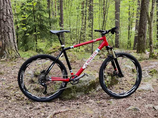 Pari kuukautta haalin tuohon osia käytettynä, kavereilta ja osan myös uutena kun ei tuntunut löytyvän muuten. Kiekot kasailtu himassa hyväksikäyttäen vanhoja Novatecin napoja ja jotain DT swissin hinnat alkaen kehiä (i25) ja Sapimin D-light pinnoja. Keula 120mm Reba. Deore 10spd voimansiirto. Jarrut Slx/Deore. Kammet Deore XT. Dropperi 150mm brand-X. Renkaina Onzalaiset second handit.
